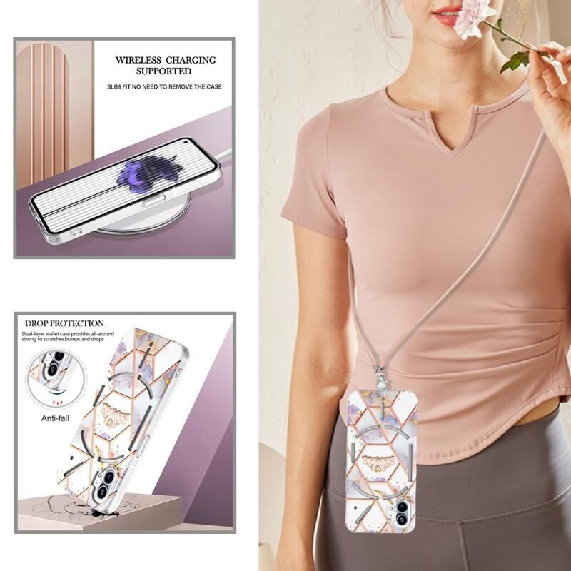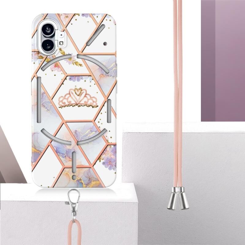 Θήκη προστασίας TPU με γαλβανισμό, ραφές και σχέδιο μαρμάρου με λουλούδια για Nothing Phone 1, με κορδόνι (Imperial Crown)