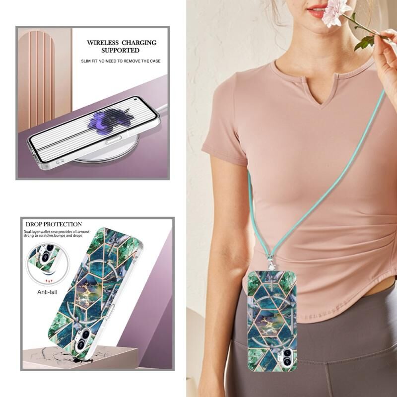 Θήκη τηλεφώνου TPU με ηλεκτρολυτική επιμετάλλωση και μαρμάρινη σύνθεση για Nothing Phone 1 με κορδόνι (Πράσινο)