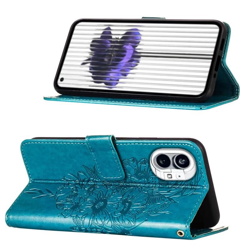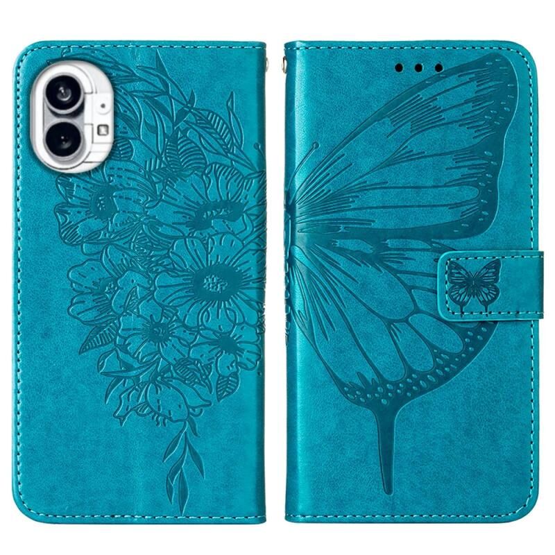 Θήκη τηλεφώνου από δέρμα με ανάγλυφο σχέδιο πεταλούδας για Nothing Phone 1 (Ανοιχτό Μωβ)