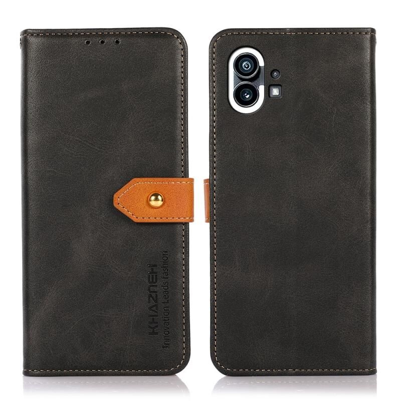 For Nothing Phone 1 KHAZNEH Dual-color Cowhide Texture Flip Leather Phone Case(Black)