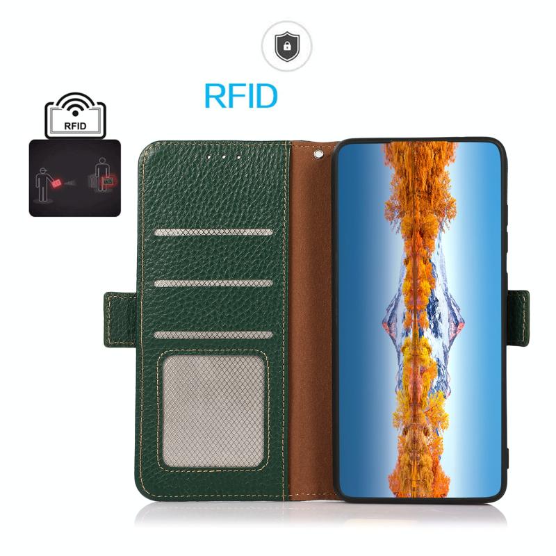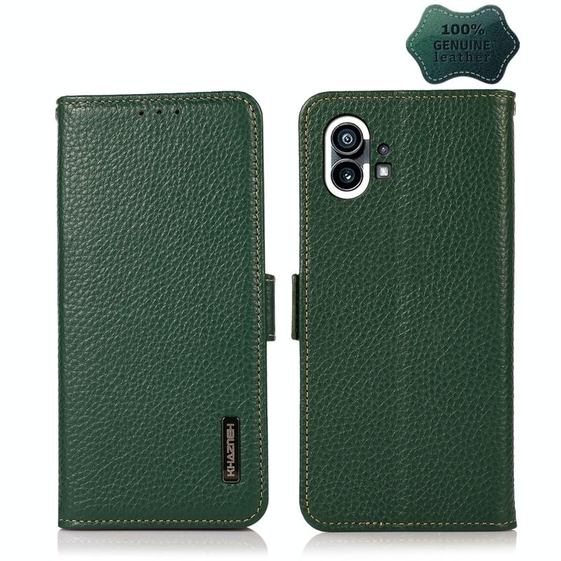 For Nothing Phone 1 KHAZNEH Side-Magnetic Litchi Genuine Leather RFID Phone Case(Green)