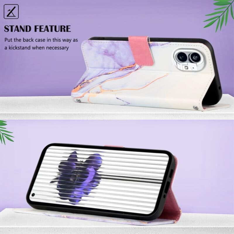 Θήκη τηλεφώνου από δέρμα με σχέδιο μαρμάρου για Nothing Phone 1 PT003 (Ροζ, Μωβ, Χρυσό)