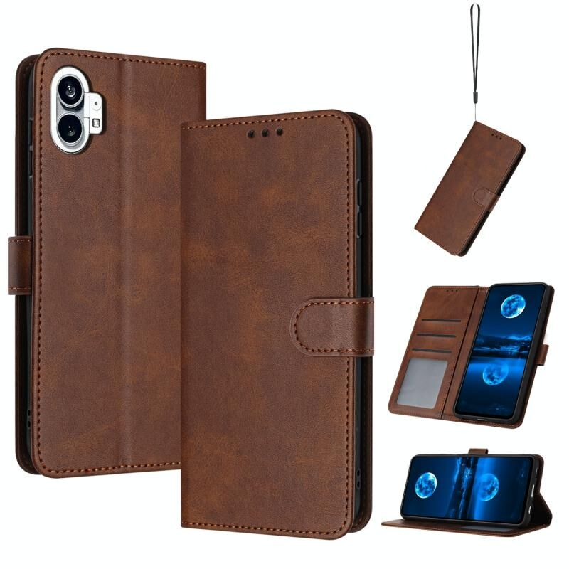 For Nothing Phone 1 Solid Calf Texture Flip υπόθεση τηλεφώνου από δέρμα (καφέ)