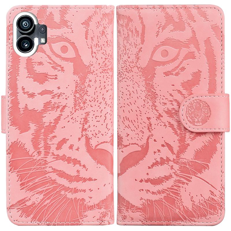 For Nothing Phone 1 Tiger Embossing Pattern Flip Leather Phone Case(Pink)