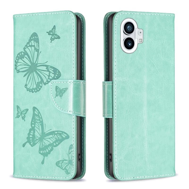 For Nothing Phone 1 Two Butterflies Embossing Leather Phone Case(Green)