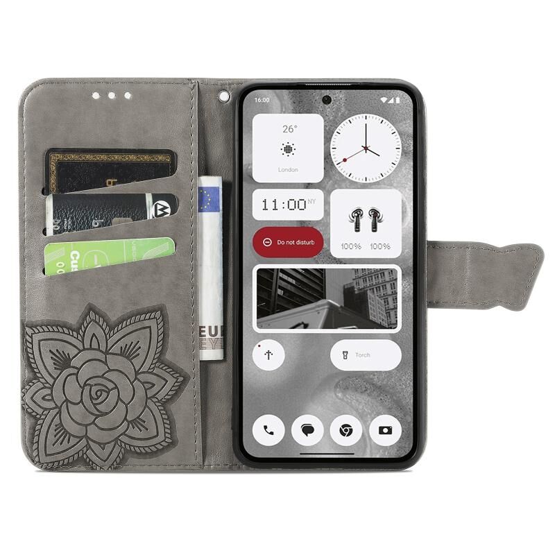 Θήκη τηλεφώνου από δέρμα με ανάγλυφο σχέδιο πεταλούδας και λουλουδιών για Nothing Phone 2 (Χρυσό Ρόδι)