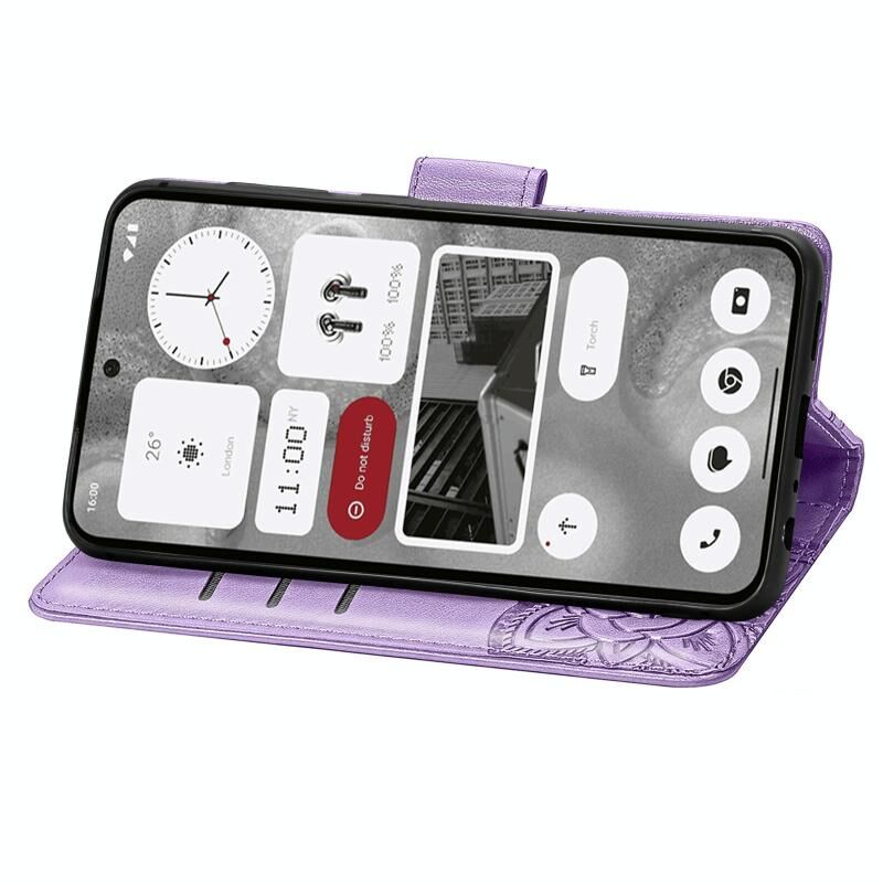 Θήκη τηλεφώνου από δέρμα με ανάγλυφο σχέδιο πεταλούδας και λουλουδιών για Nothing Phone 2 (Λιλά)