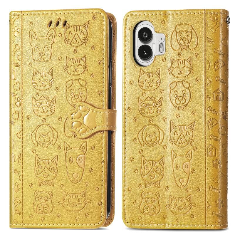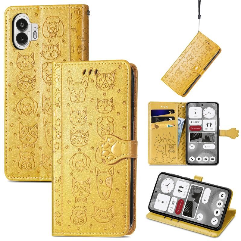 Θήκη τηλεφώνου από δέρμα με ανάγλυφο σχέδιο γάτας και σκύλου για Nothing Phone 2 (Κίτρινο)