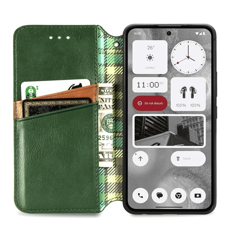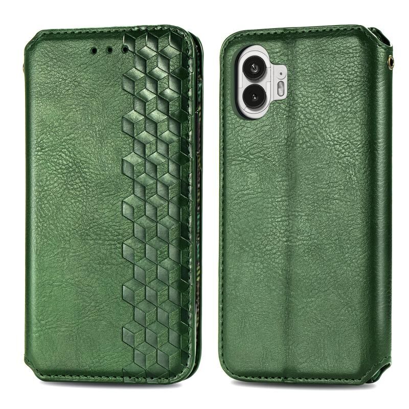 Για Τίποτα τηλέφωνο 2 κυβικό πλέγμα πιεσμένο μαγνητική δερμάτινη θήκη τηλεφώνου (πράσινο)