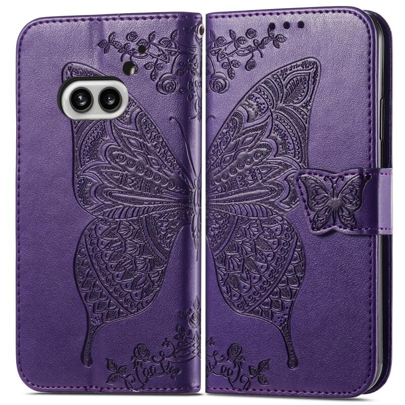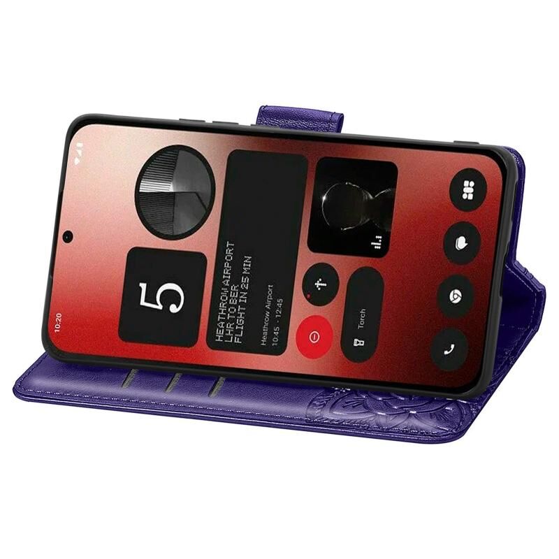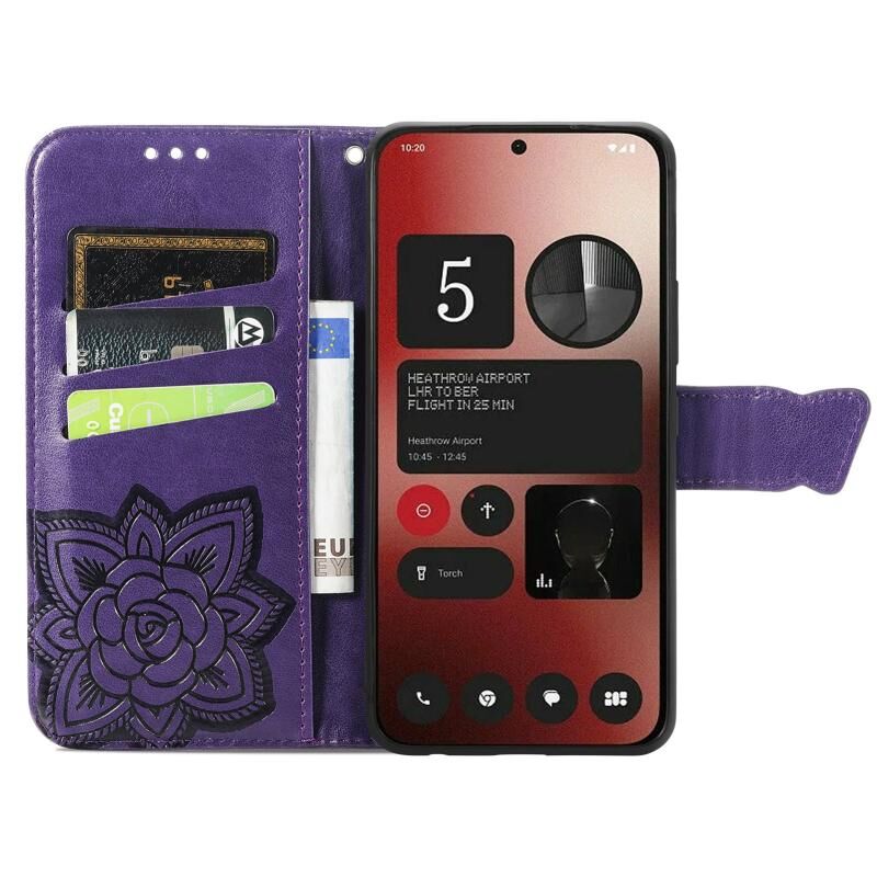 Θήκη τηλεφώνου από δέρμα με ανάγλυφο σχέδιο πεταλούδας και λουλουδιών για Nothing Phone 2a (Χρυσό ροζ)