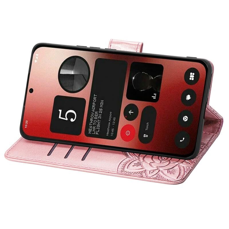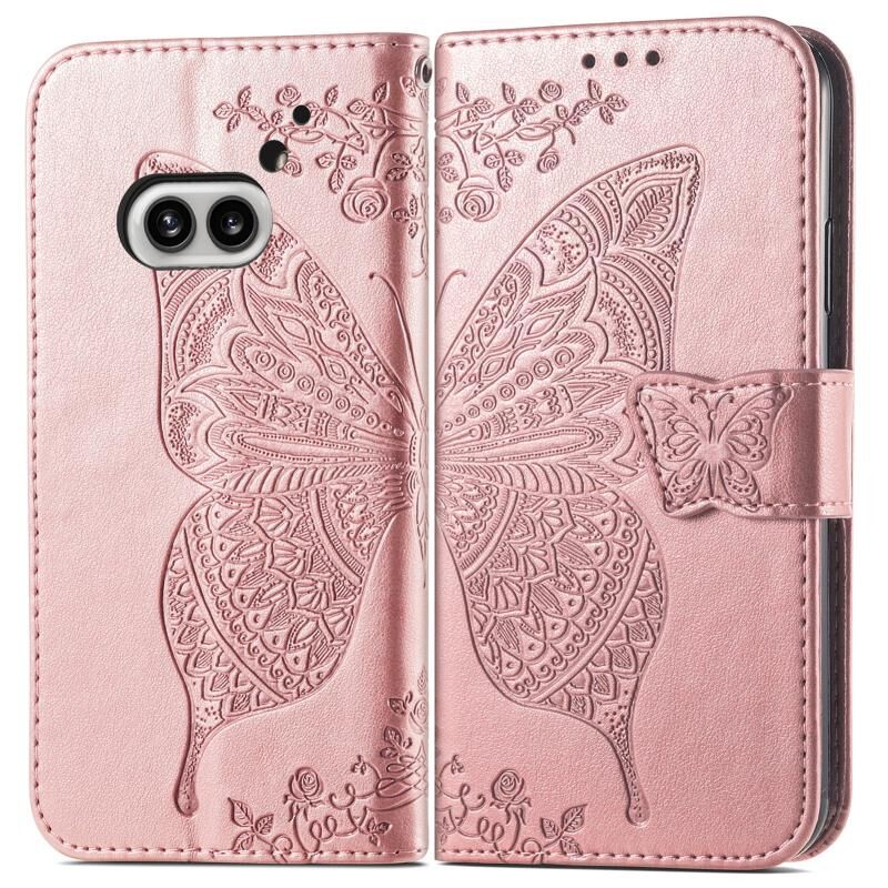Θήκη τηλεφώνου από δέρμα με ανάγλυφο σχέδιο πεταλούδας και λουλουδιών για Nothing Phone 2a (Χρυσό ροζ)