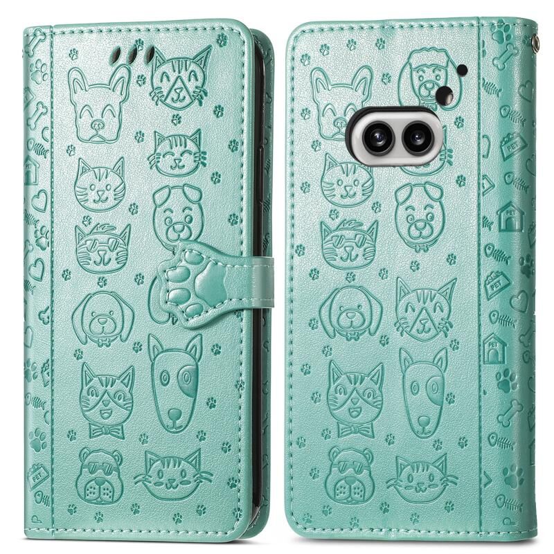 Θήκη τηλεφώνου από δέρμα με ανάγλυφο σχέδιο γάτας και σκύλου για Nothing Phone 2a (Κίτρινο)