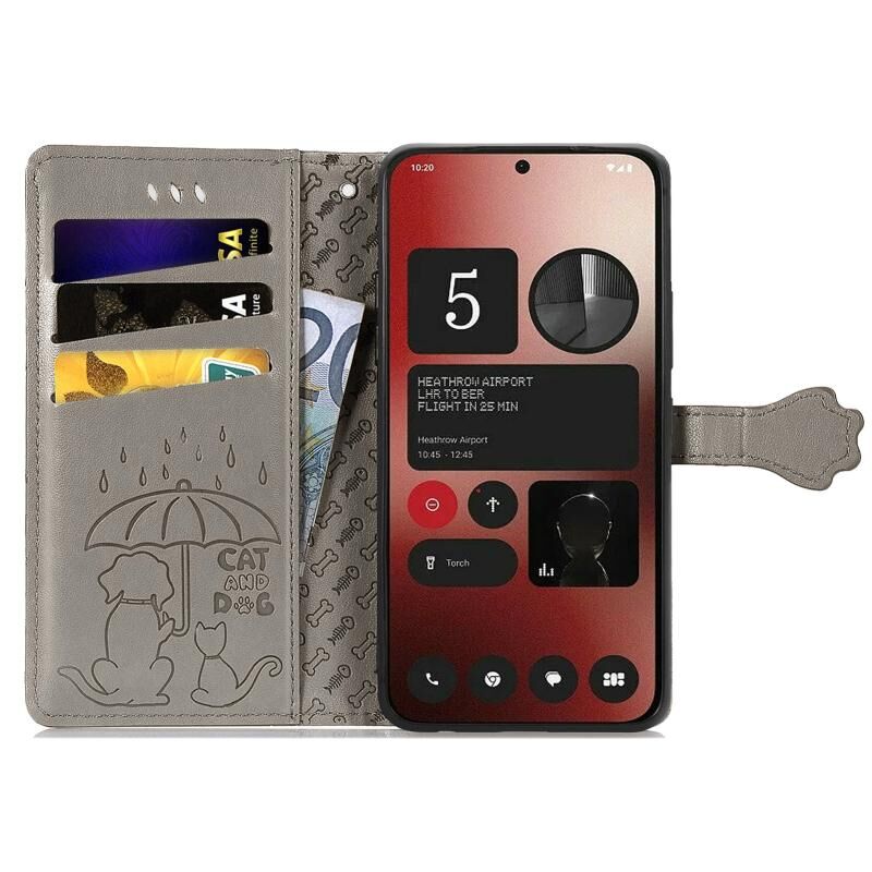 Θήκη τηλεφώνου από δέρμα με ανάγλυφο σχέδιο γάτας και σκύλου για Nothing Phone 2a (Κίτρινο)