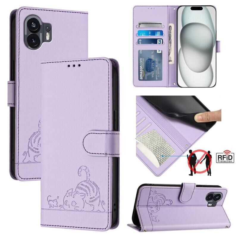 Θήκη τηλεφώνου από δέρμα με ανάγλυφο σχέδιο γάτας και αρουραίου για Nothing Phone 2A, με προστασία RFID και κορδόνι (Ροζ)