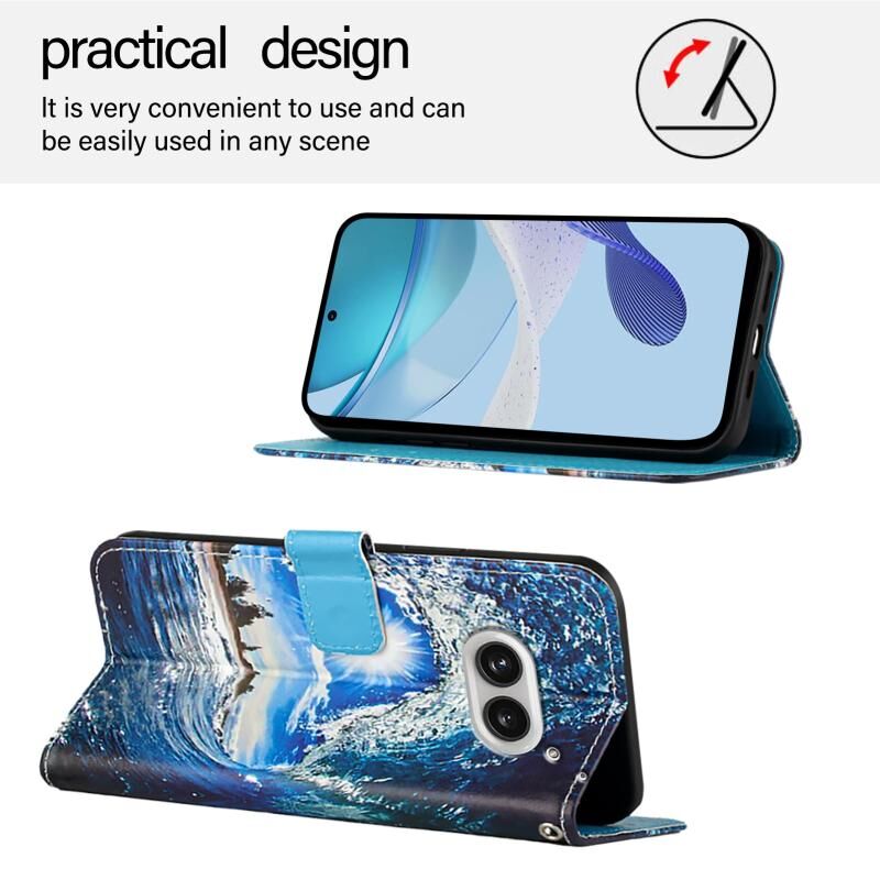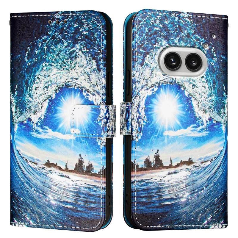 Θήκη τηλεφώνου από δέρμα με απλή ύφανση για Nothing Phone 2a με έγχρωμο σχέδιο (Κύματα και Ήλιος)