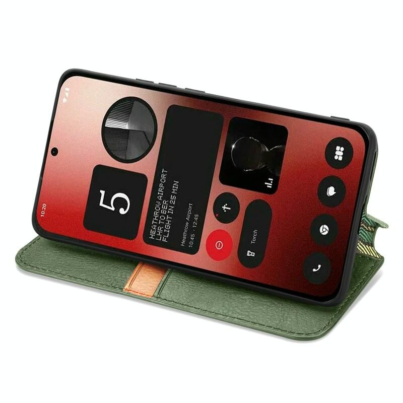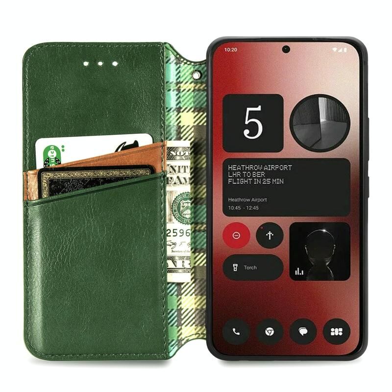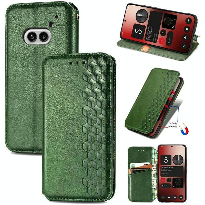 Για Τίποτα Τηλέφωνο 2α Κυβικό πλέγμα Πιεσμένο μαγνητική θήκη τηλεφώνου δερμάτινη(Πράσινο)