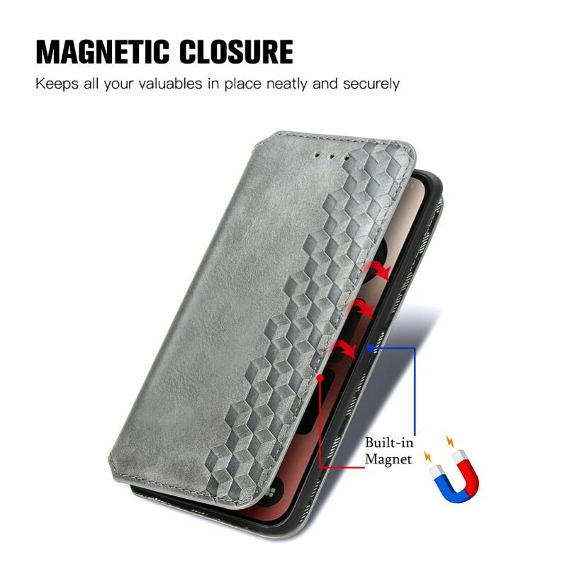 Για Τίποτα Phone 2a Cubic Grid Pressed Μαγνητική δερμάτινη θήκη τηλεφώνου (γκρι)
