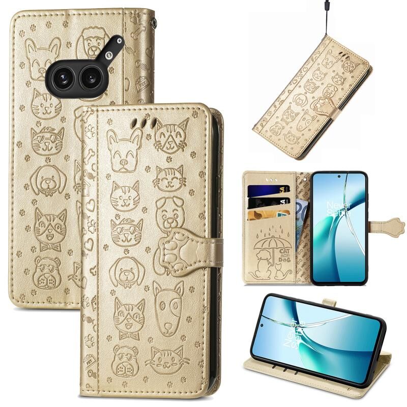 For Nothing Phone 2a Plus Cat and Dog Embossed Leather Phone Case(Gold)
