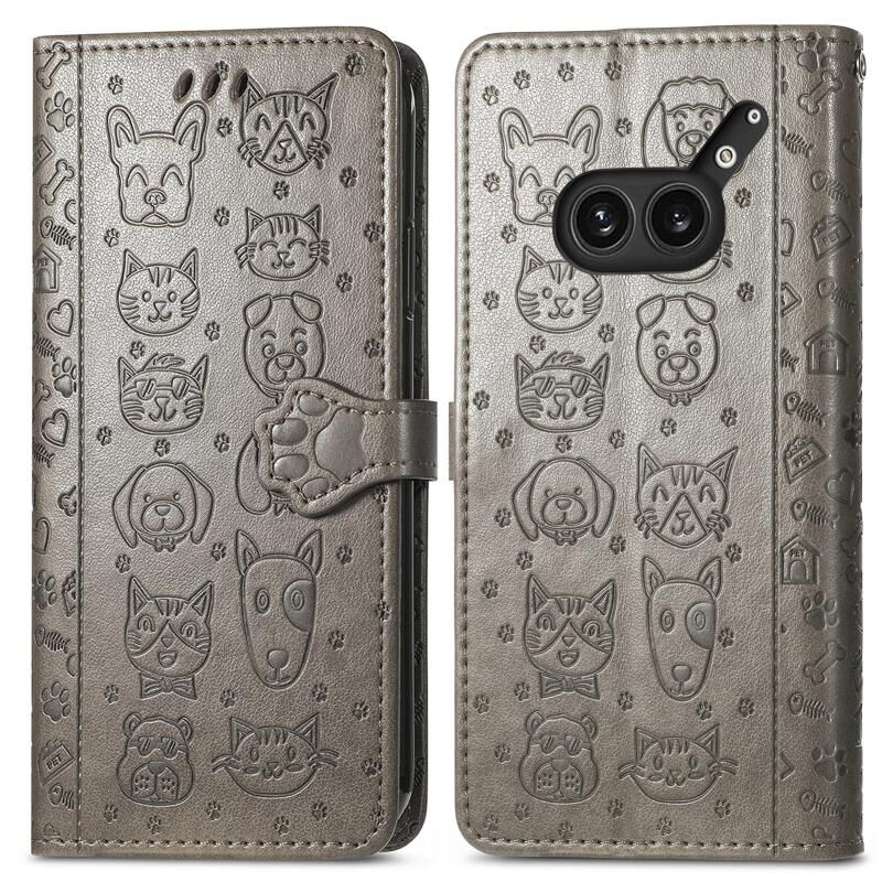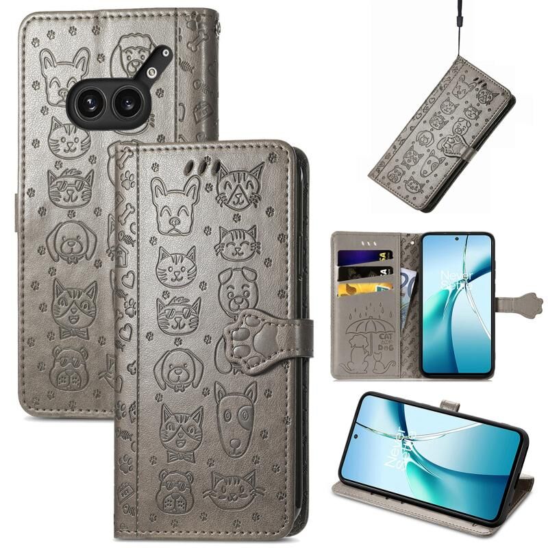For Nothing Phone 2a Plus Cat and Dog Embossed Leather Phone Case(Gray)