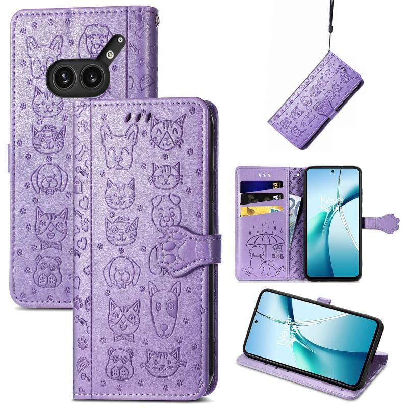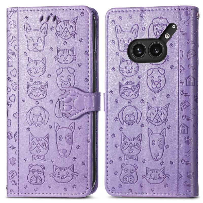 For Nothing Phone 2a Plus Cat and Dog Embossed Leather Phone Case(Purple)