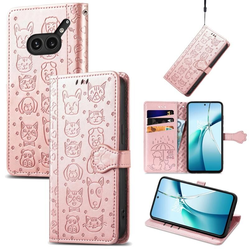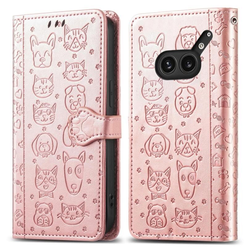 For Nothing Phone 2a Plus Cat and Dog Embossed Leather Phone Case(Rose Gold)