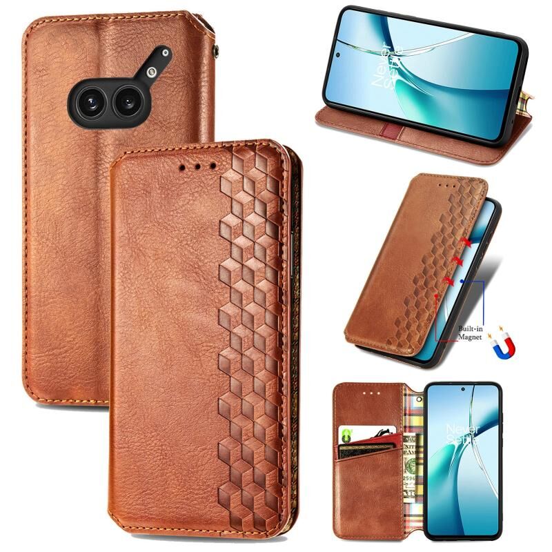For Nothing Phone 2a Plus Cubic Grid Pressed Magnetic Leather Phone Case(Brown)