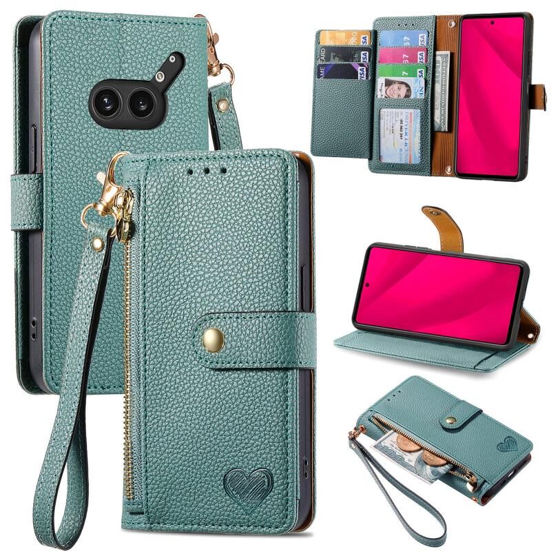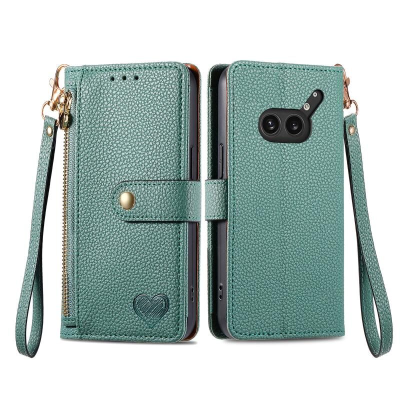 Για τίποτα τηλέφωνο 2a Plus αγάπη φερμουάρ Lanyard δερμάτινη θήκη τηλεφώνου (πράσινο)