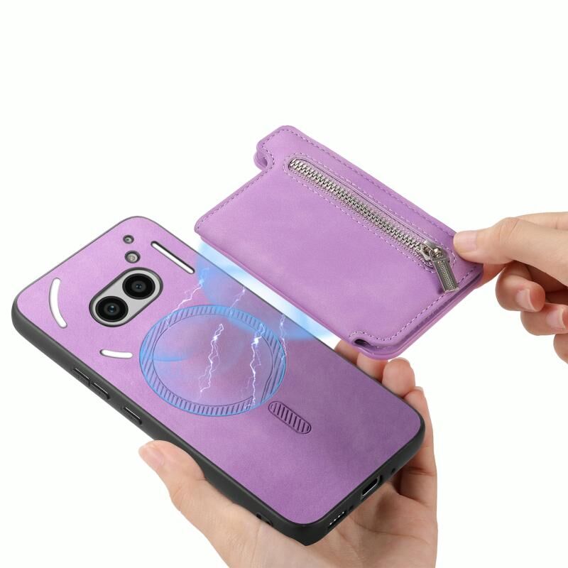 Θήκη τηλεφώνου Nothing Phone 2a Retro MagSafe με θήκη κάρτας και φερμουάρ (Κίτρινο)