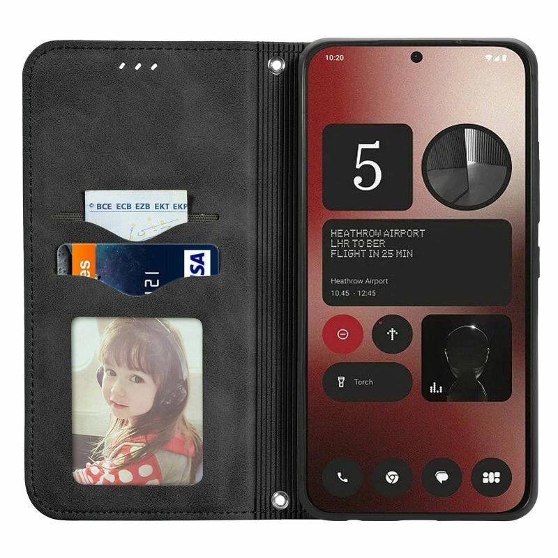 Για Τίποτα τηλέφωνο 2a Retro δέρμα αίσθηση μαγνητική Flip δέρμα τηλέφωνο υπόθεση (Μαύρο)