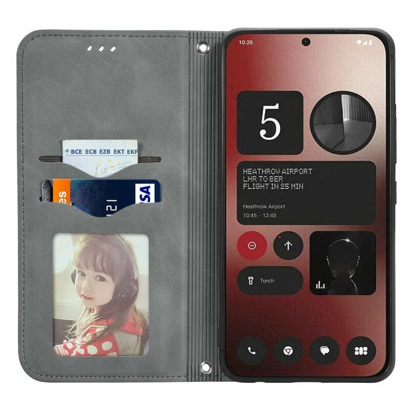 Για Τίποτα τηλέφωνο 2a Retro δέρμα αίσθηση μαγνητική Flip δέρμα τηλέφωνο υπόθεση (γκρι)
