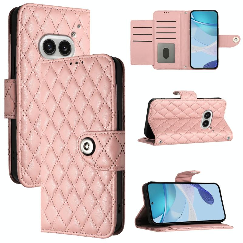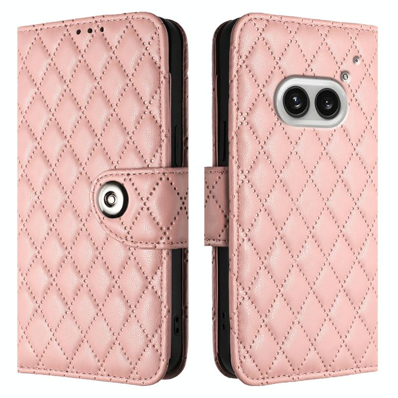 For Nothing Phone 2a Rhombic Texture Flip Leather Phone Case with Lanyard(Coral Pink)