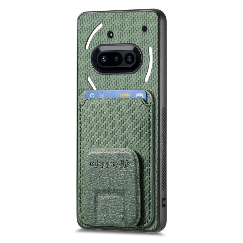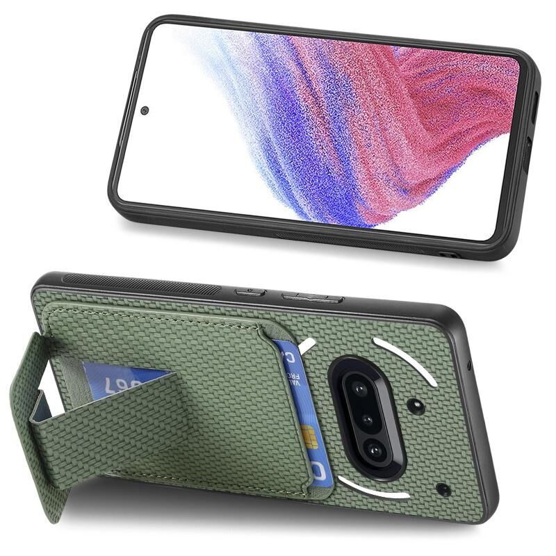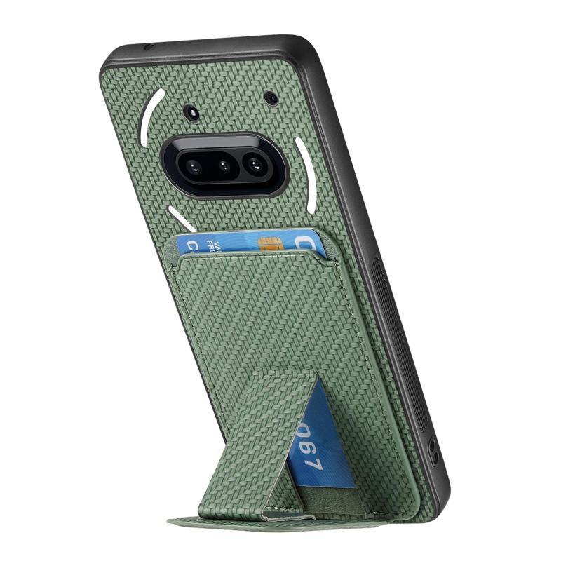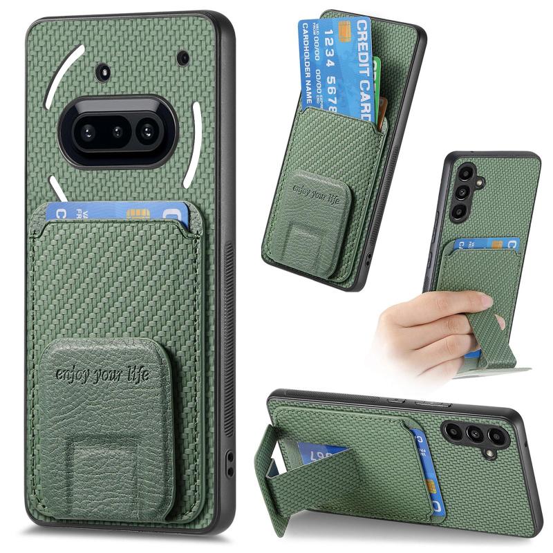For Nothing Phone 3a Carbon Fiber Card Bag Fold Stand Phone Case(Green)