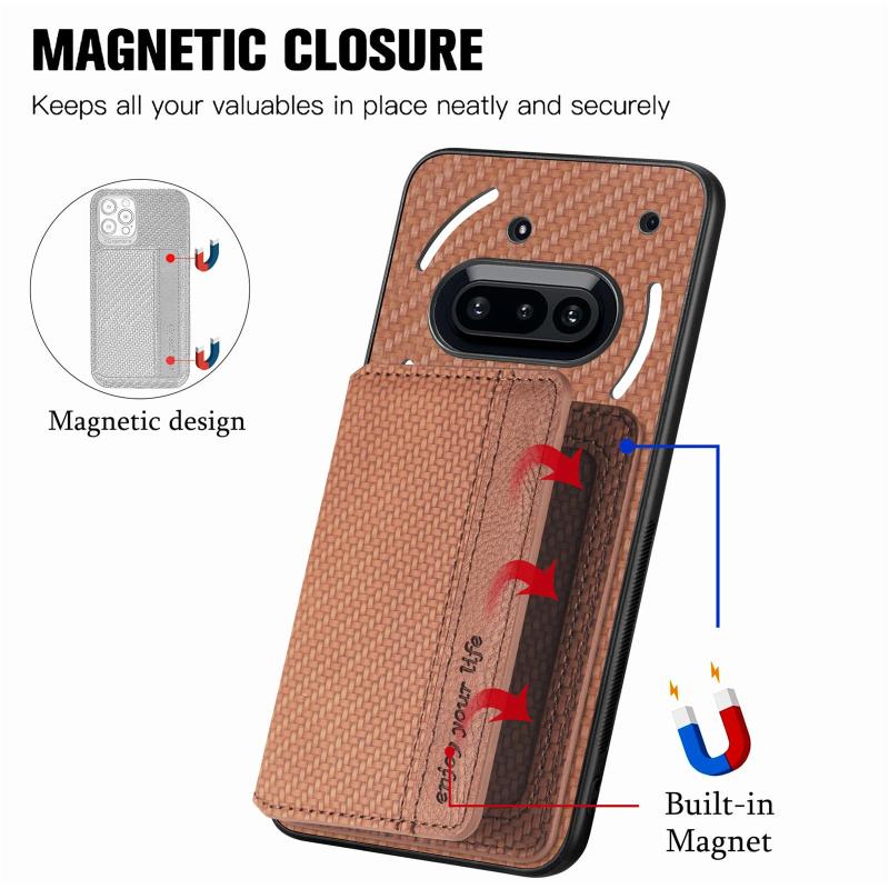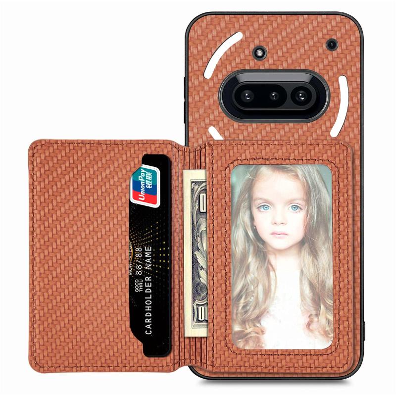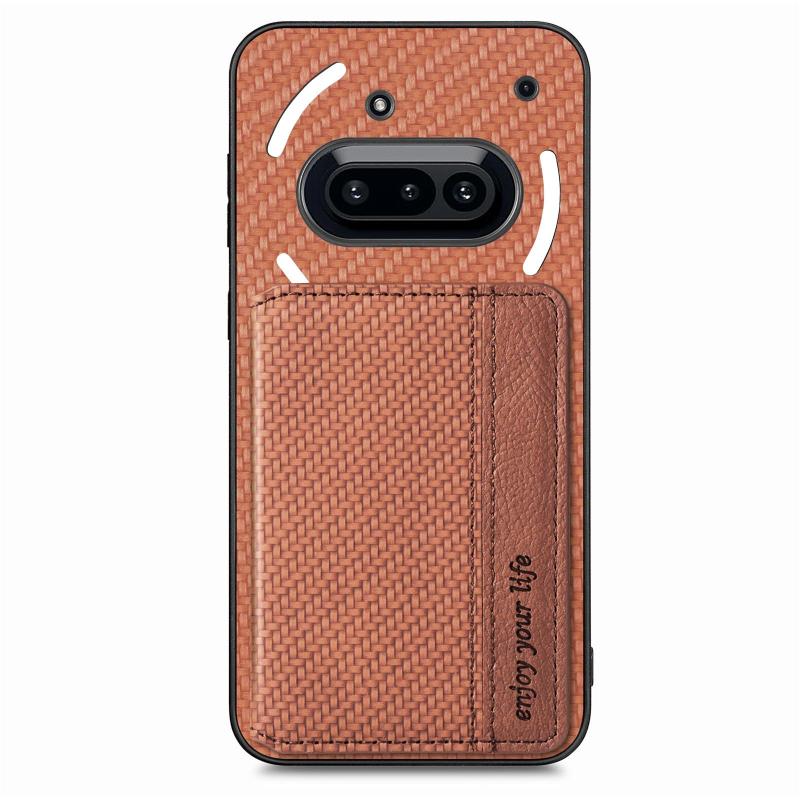 For Nothing Phone 3a Carbon Fiber Magnetic Card Bag Phone Case(Brown)