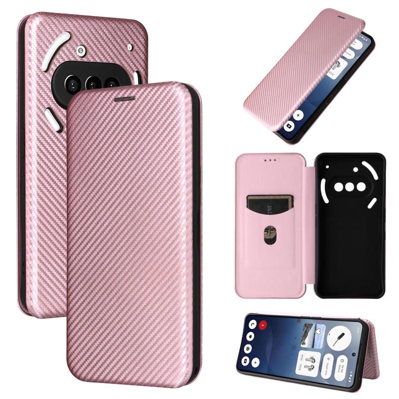 For Nothing Phone 3a Carbon Fiber Texture Flip Leather Phone Case(Pink)