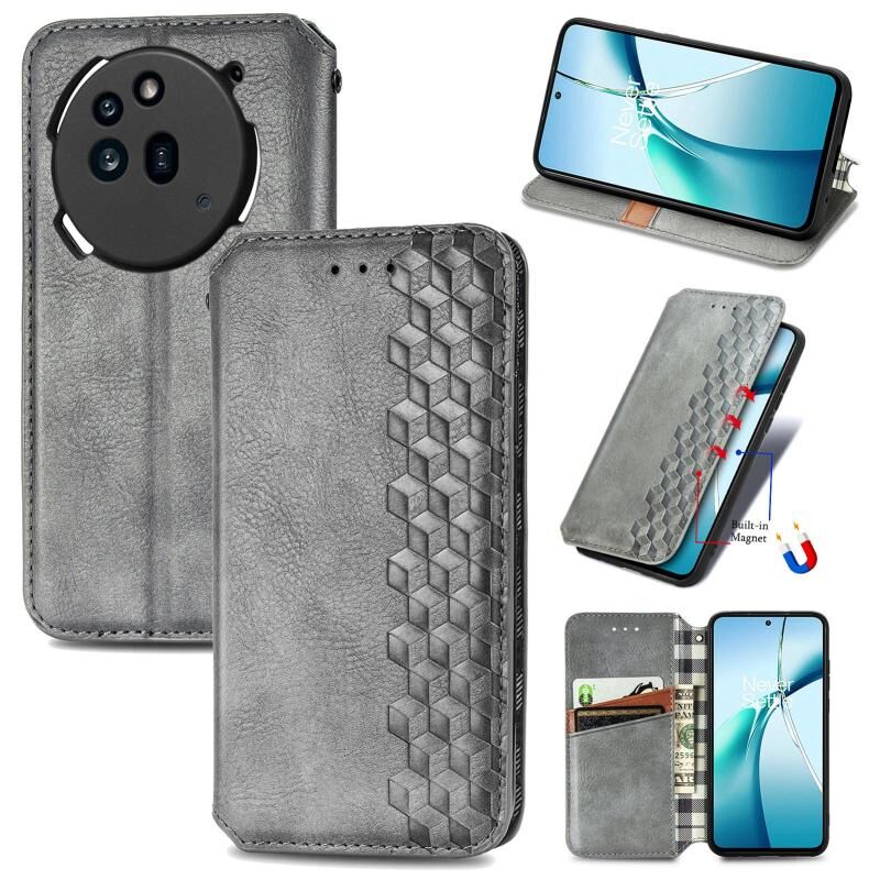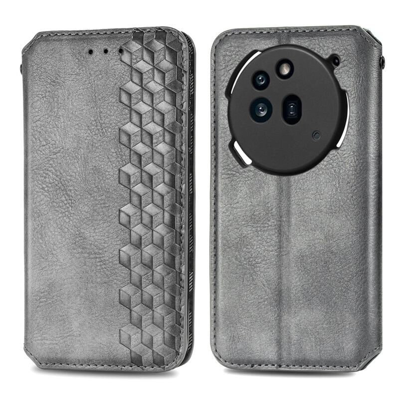 For Nothing Phone 3a Cubic Grid Pressed Magnetic Leather Phone Case(Gray)