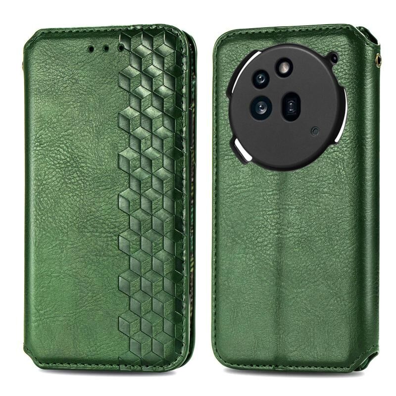 For Nothing Phone 3a Cubic Grid Pressed Magnetic Leather Phone Case(Green)