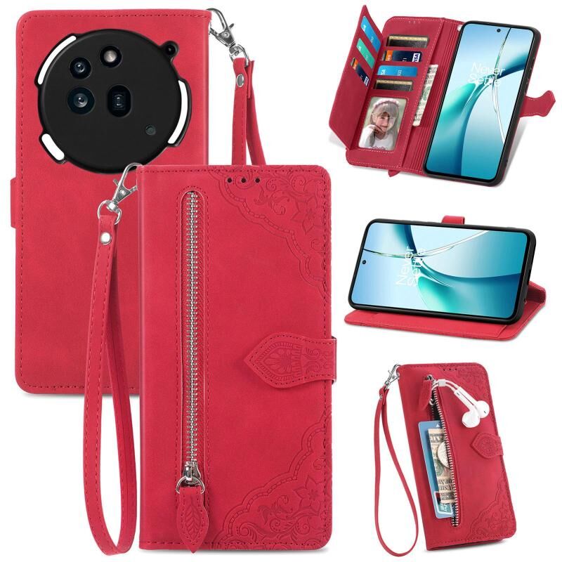 For Nothing Phone 3a Embossed Flower Zipper Leather Phone Case(Red)