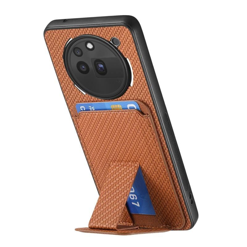 For Nothing Phone 3a Pro Carbon Fiber Card Bag Fold Stand Phone Case(Brown)
