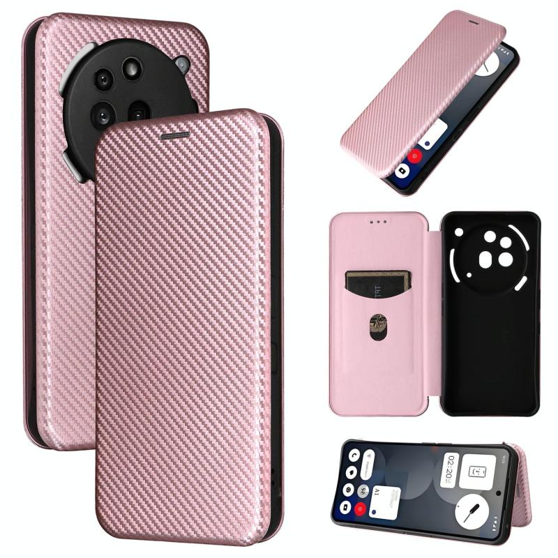 For Nothing Phone 3a Pro Carbon Fiber Texture Flip Leather Phone Case(Pink)