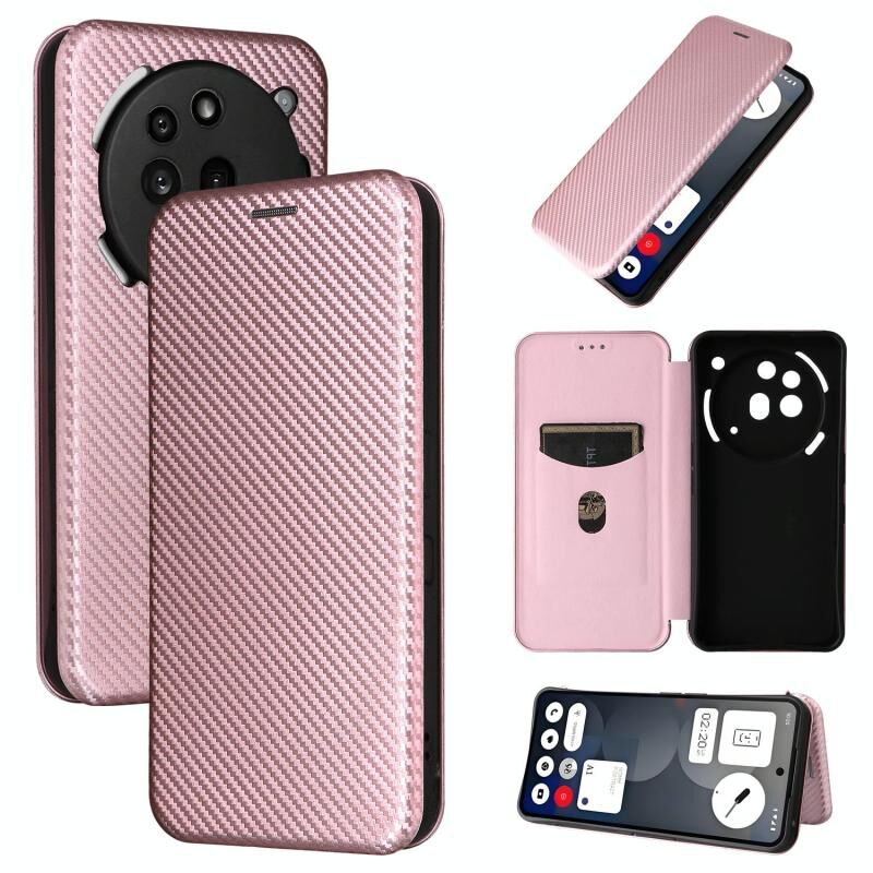 Θήκη τηλεφώνου Nothing Phone 3a Pro, Υφή ανθρακονημάτων, Δερμάτινη θήκη τύπου flip (Μαύρο)