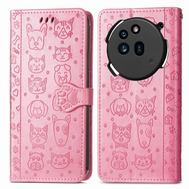 For Nothing Phone 3a Pro Cat and Dog Embossed Leather Phone Case(Pink)