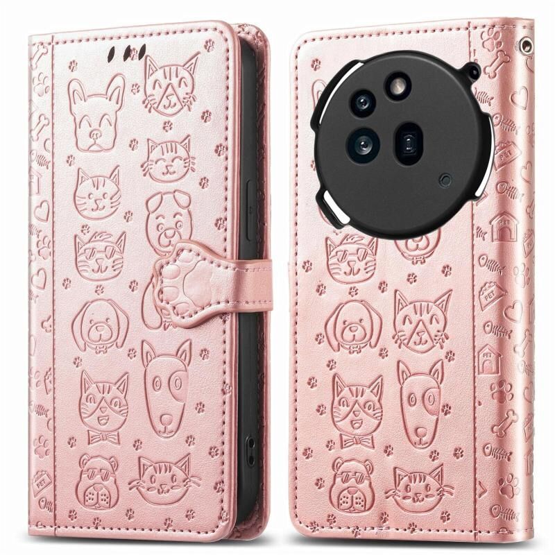 For Nothing Phone 3a Pro Cat and Dog Embossed Leather Phone Case(Rose Gold)