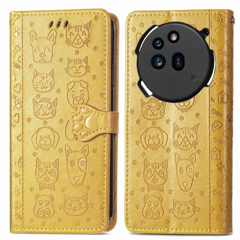 For Nothing Phone 3a Pro Cat and Dog Embossed Leather Phone Case(Yellow)