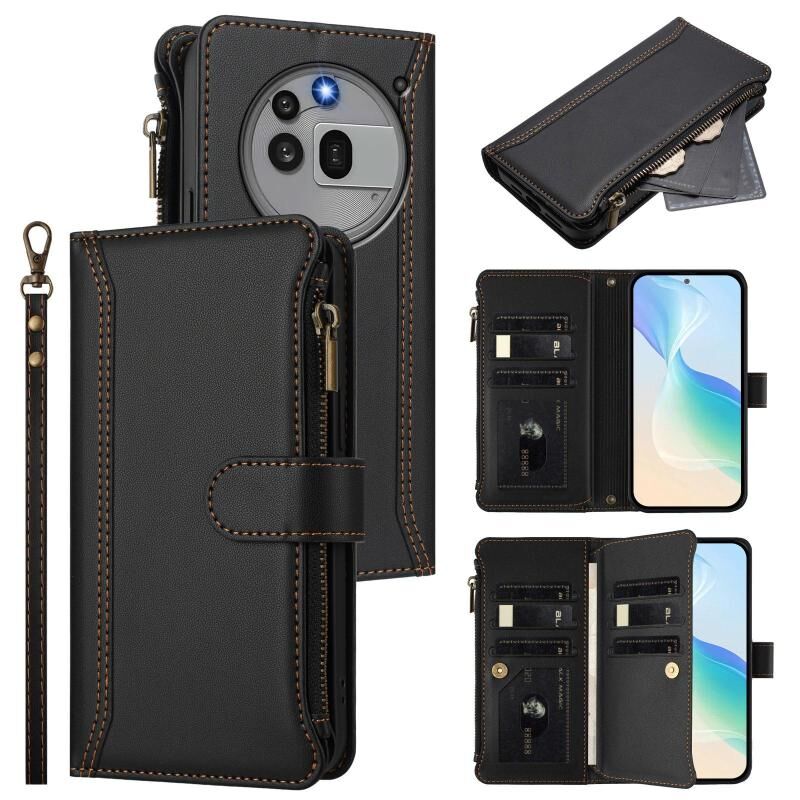 For Nothing Phone 3a Pro Magnetic Closure 9 Card Slots Zipper Leather Case with Hand Strap(Black)