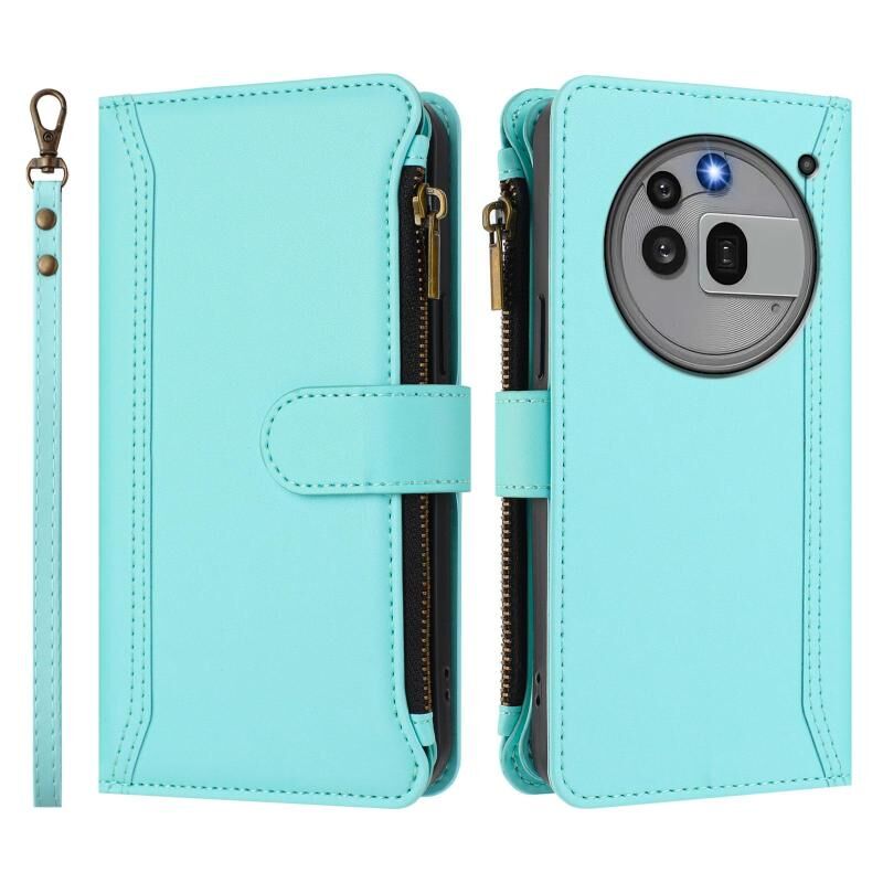 For Nothing Phone 3a Pro Magnetic Closure 9 Card Slots Zipper Leather Case with Hand Strap(Mint Green)