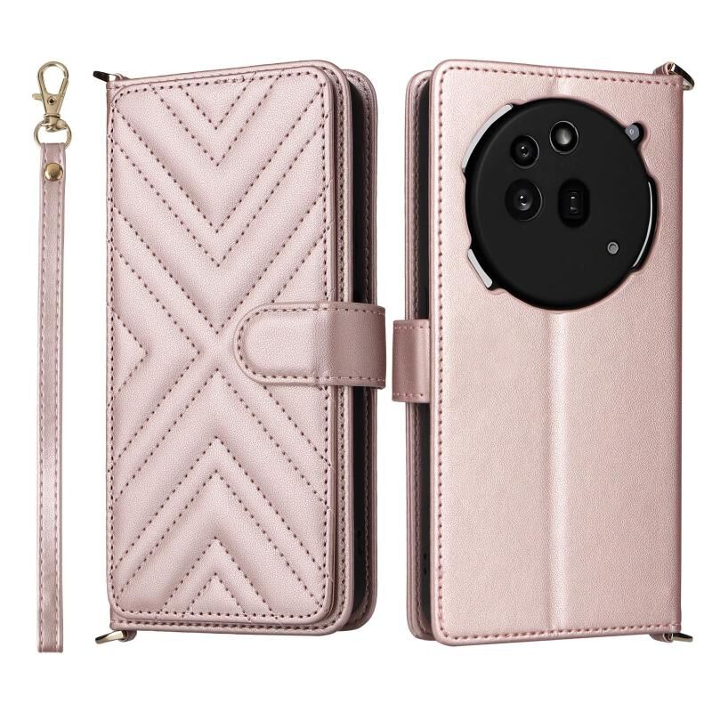 Θήκη τηλεφώνου από δέρμα, πολυλειτουργική για Nothing Phone 3a Pro με 6 υποδοχές καρτών και λουρί καρπού (ρόζ)