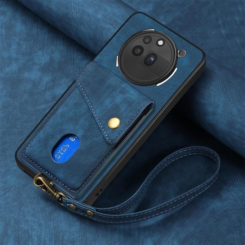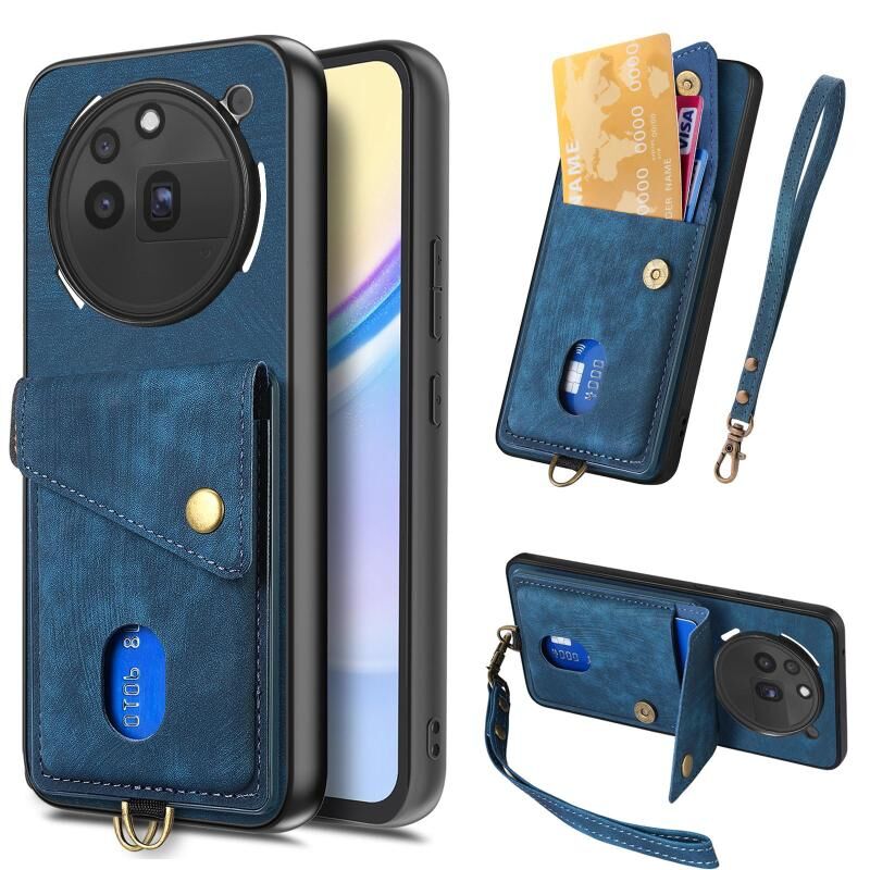 For Nothing Phone 3a Pro Retro Card Wallet Fold Leather Phone Case with Strap(Blue)