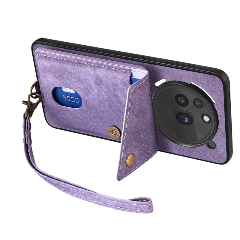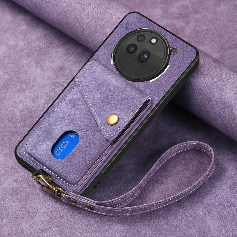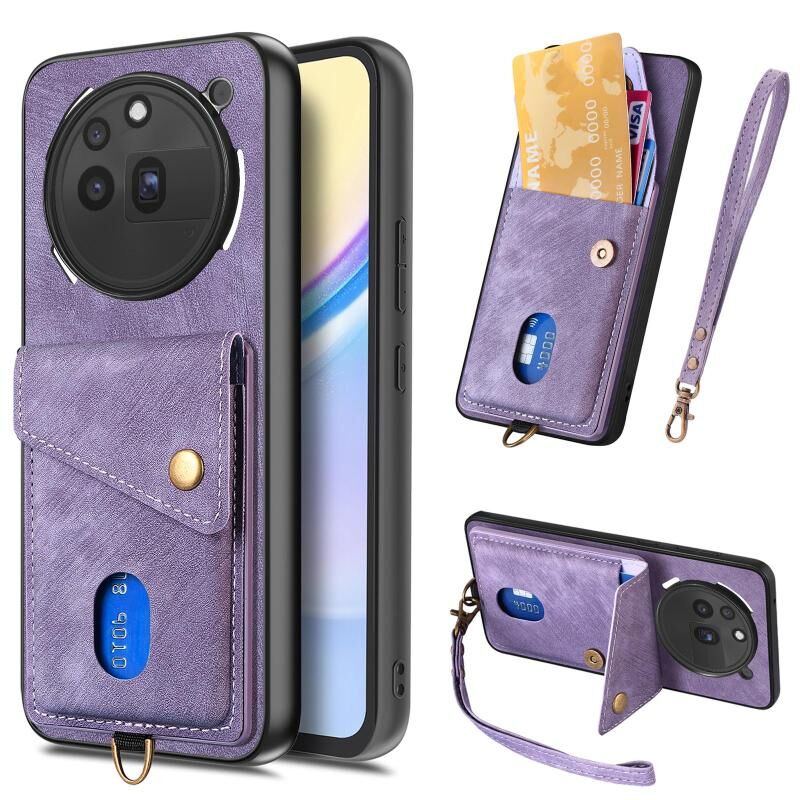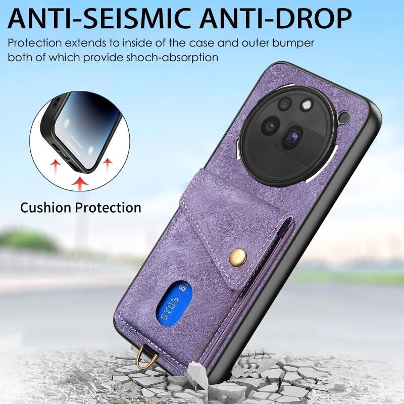For Nothing Phone 3a Pro Retro Card Wallet Fold Leather Phone Case with Strap(Purple)