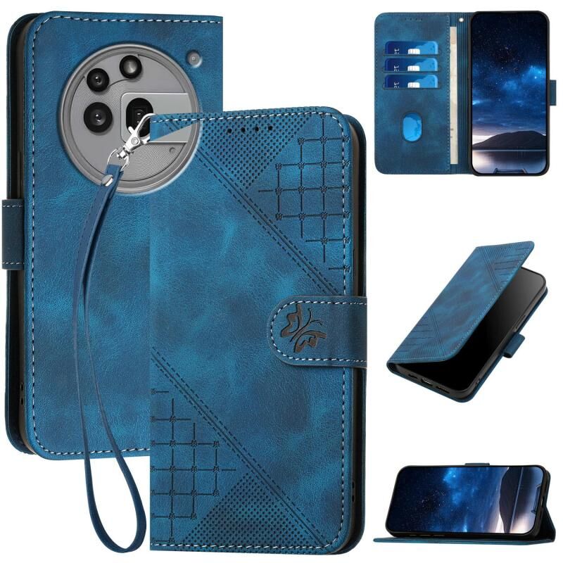 For Nothing Phone 3a Pro YX0080 Grid Butterfly Embossed Pattern Leather Phone Case with Lanyard(Dark Blue)