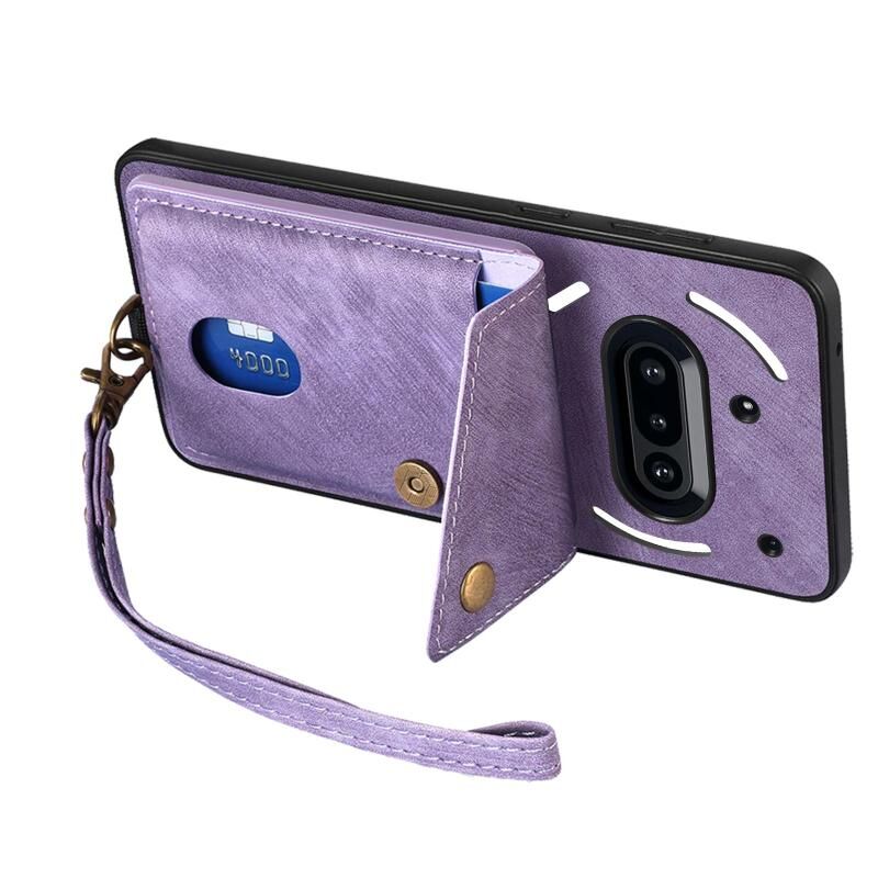 For Nothing Phone 3a Retro Card Wallet Fold Leather Phone Case with Strap(Purple)